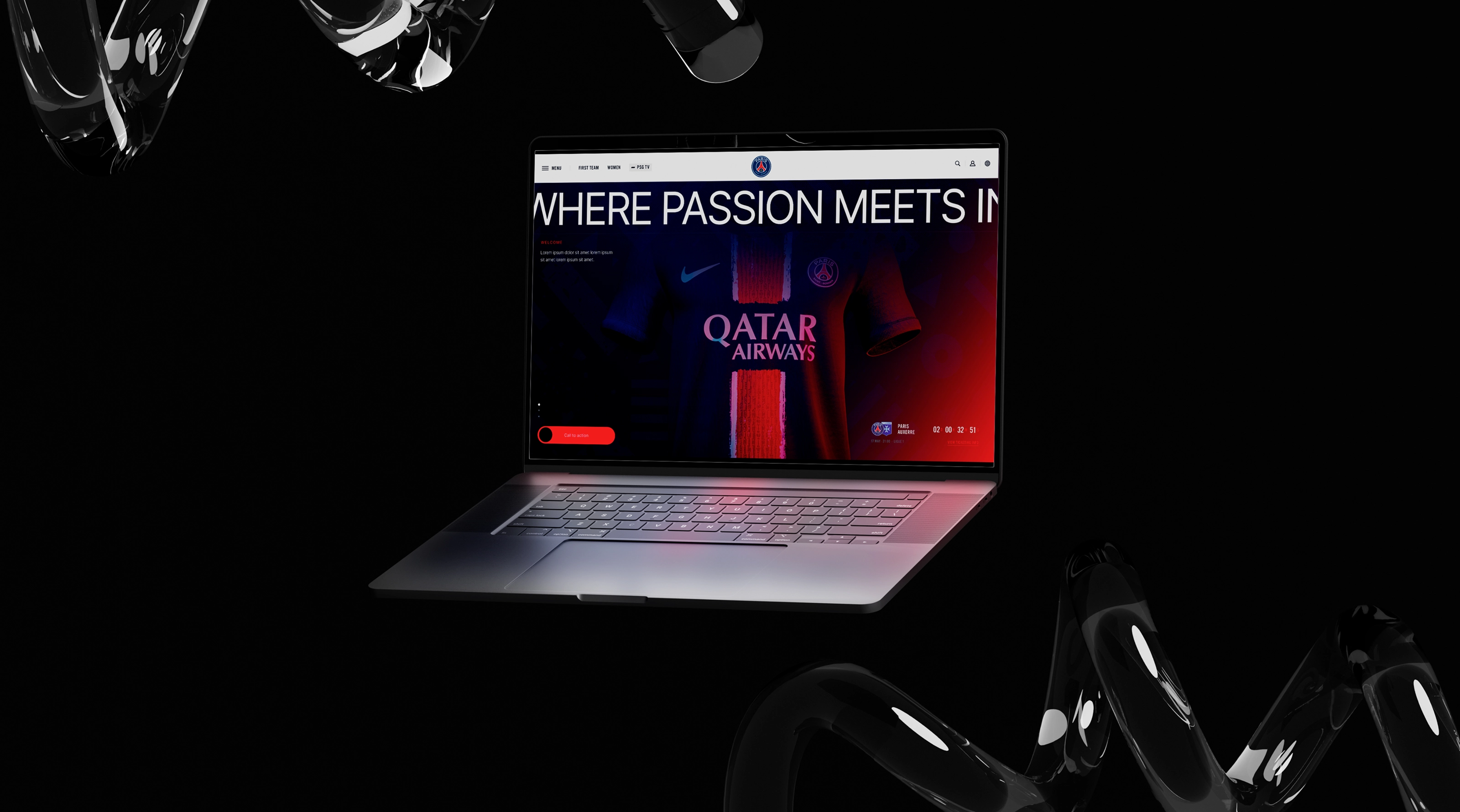 This concept presents a future-facing product website for Paris Saint-Germain, built around immersive 3D environments and interactive web storytelling. It shows how a modern football brand can translate the atmosphere of a stadium and the energy of the club into a dynamic web experience, combining real-time 3D, motion design, and interactive product presentation.